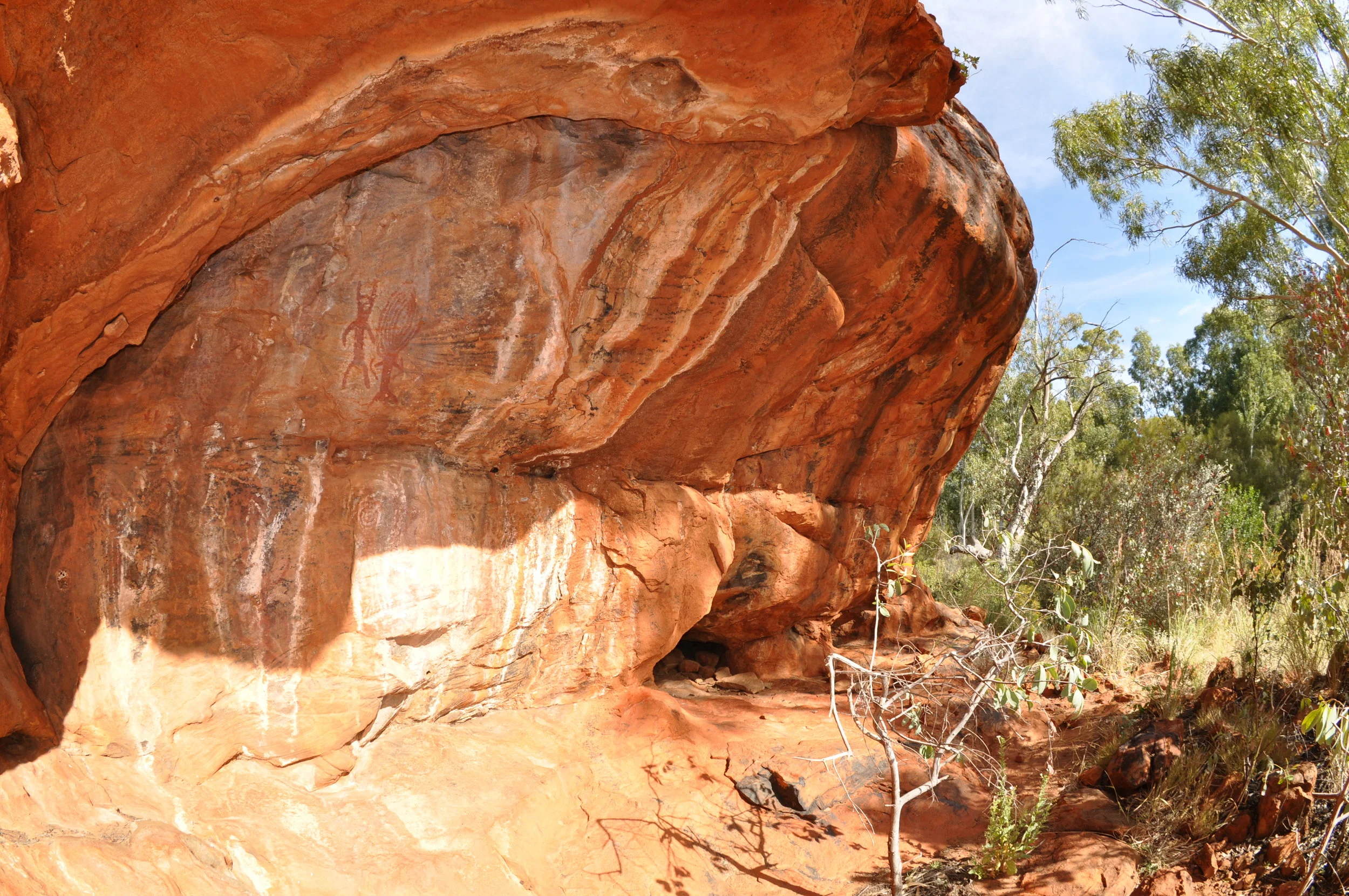 While many travellers on the Canning Stock Route (CSR) will be familiar with Western Desert acrylic paintings, few appreciate that ‘dynamic’ rock art is also a feature of Western Desert society. This art includes both pigment art (painting, drawing and some stencilling) and engravings (where the rock surface has been altered by pecking, scoring and abrading). While some of this art was produced relatively recently, some is also very ancient. Custodial knowledge about the role of the art can provide new perspectives about the societies that produced it and how and why this art was produced. The rock art of the CSR shows high levels of diversity in its style. It is complex, diverse and varies over space.